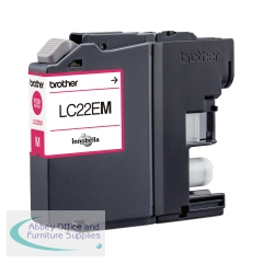Brother LC22EM Inkjet Cartridge Magenta LC22EM. Page yield: 1,200. Compatible with Brother MFC-J 5920DW. Standard yield. Original Brother inkjet cartridge. Simple fuss-free installation.