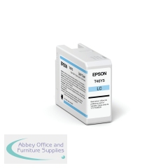 Epson T47A5 Light Cyan UltraChrome Pro Ink 50ml C13T47A500. Light Cyan. Genuine Epson T47A5 inkjet cartridge. Compatible with: SureColor SC-P900 (C11CH37401, C11CH37401DA, C11CH37402, C11CH37402DA). Capacity: 50ml.