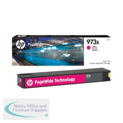 HP 973X Magenta PageWide Inkjet Cartridge High Yield F6T82AE. Colour: Magenta. Page Yield: 7000 Pages. Compatible with HP PageWide Pro 452dn/452dw/MFP 477dn/MFP 477dw.