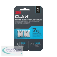 3M Claw Drywall Picture Hanger 30kg (Pack of 2) 7100269195. Picture hanger for plasterboard. Hardened steel claws which lock securely into drywall. Hang on drywall without studs. Trusted strength up to 30kg. No holes left behind.