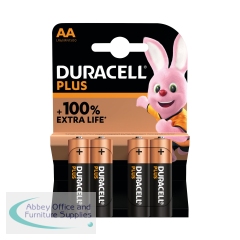 Duracell Plus AA Battery Alkaline 150% Extra Life Power Boost (Pack of 4) 5009370+. Perfect for powering everyday devices. Up to 150% Extra Life with Power Boost Actives. Leakage protection. Unused batteries last up to 10 years in ambient storage.