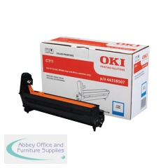 Oki C824/834/844 EP Laser Drum Cyan 46857507. Colour: Cyan. Page yield: 30,000. Compatible with: Oki C824, C834 and C844. Laser Drum Unit.
