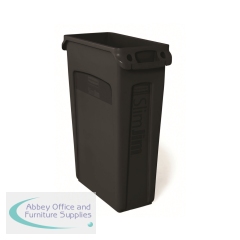Rubbermaid Slim Jim Vented Container 87L Black FG354060BLA. Premium quality resin. Built-in venting channels. 4 bag cinches secure liners. Rim with strengthened rib. Base and rim handles - Improves grip and facilitates emptying of the bin.