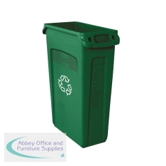 Rubbermaid Slim Jim Vented Container 87L Green FG354007GRN. Premium quality resin. Built-in venting channels. 4 bag cinches secure liners. Rim with strengthened rib. Base and rim handles - Improves grip and facilitates emptying of the bin.