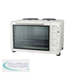 Coolzone table top 47L fridge with shelf, 2 balcony door shelves and 4L ice box. 1.8 cu ft /50 litre capacity. Dimensions: W440 x D470 x H510mm. Finish: White. (Specification may vary). Energy rating: F.