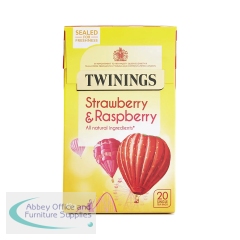 Twinings Strawberry Raspberry Tea Bags (Pack of 20) F17457. A summer blend of sweet strawberry notes and tangy raspberry aromas. All natural ingredients with no additives. Perfect for drinking at any time of the day.