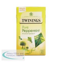 Twinings Pure Peppermint Tea Bags (Pack of 20) F17458. An invigorating minty infusion of peppermint leaves. All natural ingredients with no additives. Naturally caffeine free with no added sugar. Perfect for drinking after a meal.