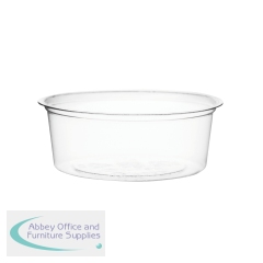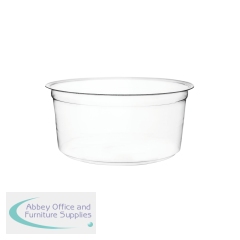 Vegware Deli Container 12oz Round Clear (Pack of 500) CF-DC-12. Disposable. For use with Deli container round lid 8-32oz. Suitable for cold food. Made from PLA, a renewable plant material. Commercially compostable where accepted.