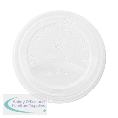 Vegware Soup Container Hot Lid 115-Series Opaque (Pack of 500) VLID115S. Disposable. Use with Vegware 115-Series soup containers. Made from CPLA, a renewable plant material. No-hole lid. Commercially compostable where accepted. Off-white.