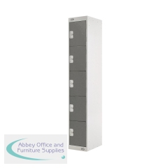 Five Compartment Locker 300x450x1800mm Dark Grey Door MC00063. Fitted with recessed cam deadlock and supplied with two keys per lock. Ventilated. Dimensions: H1800 W300 D450mm. Capacity Weight: 19kg Per Compartment. Non-returnable.