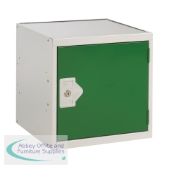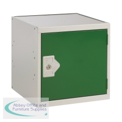 One Compartment Cube Locker 380x380x380mm Green Door MC00094. Fitted with recessed cam deadlock and supplied with two keys per lock. Ventilated. Dimensions: H380 W380 D380mm. Capacity Weight: 19kg Per Compartment. Non-returnable.
