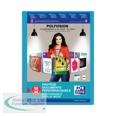Oxford Display Book 40 Part PP A4 Blue 100206231. Display book made from polypropylene. Home and office organisation. Glass clear pockets. 40 pockets to store 80 sheets. Colour: Blue.