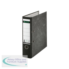 Leitz LAF180 Recycled 80mm A4 Black (Pack of 10) 10180095. Capacity: 600 A4 sheets (80 gsm). Durable, paper cover. Certification: Blue Angel. 5 year guarantee on the mechanism.