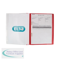 Elba Quotation folders. Clear pocket front cover. Colour co-ordinated spine and back cover. Internal 8cm filing prongs and back pocket. A4 size. Colour - red.