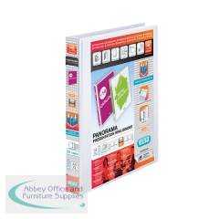 Elba Panorama 50mm 4 D-Ring Presentation Binder A4 White (Pack of 10) 400001309. Made from hard wearing polypropylene covered board. 500 sheet capacity. Clear pockets on front, back and spine. 70mm spine.