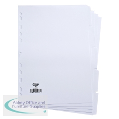 Elba 5-Part Divider 160gsm Manilla Multipunched A4 White 100204880 A4 5 Part 160gsm manilla dividers. Multi-punched to fit A4 ring binders and lever arch files. Tabs can be written or typed on. Colour: White. Size: A4.