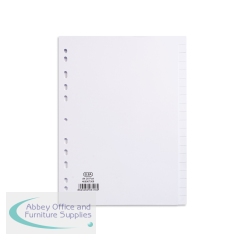 Elba 10-Part Divider 160gsm Manilla Multipunched A4 White 100204881 A4 10 Part 160gsm manilla dividers. Multi-punched to fit A4 ring binders and lever arch files. Tabs can be written or typed on. Colour: White. Size: A4.