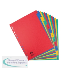 Elba 10-Part Manilla Bright Dividers 160gsm A4 Assorted 400008300 A4 10 part 160gsm manilla dividers. Multi-punched to fit A4 ring binders and lever arch files. Tabs can be written or typed on. Colour: Assorted. Size: A4.