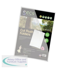 Stewart Superior Seco CutFlush Folder A4 Clear (Pack of 25) LSF-CL/25. A4 cut flush folders. Fully recyclable and biodegradable. Made from 50% recycled materials. Embossed to help reduce glare. Open on top and side for easy access. Colour: Clear.