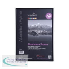 Seco Brushed Aluminium Frame 11mm A3 Black ALA3-BK. Size: A3. Complete with fitting accessories. Flexible Perspex safety glass for resistance to breakage. Brushed aluminium 11mm frame. Colour: Black.