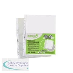 Stewart Superior Eco Punch Pocket Clear (Pack of 100) PP50. Oxo-biodegradable polypropylene A4 punched pockets open at the top. Made from 50 micron polypropylene with reinforced spine for extra strength. No rub off from copy or photographs.