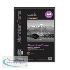 Seco Brushed Aluminium Frame 11mm A4 Black ALA4-BK. Size: A4. Complete with fitting accessories. Flexible Perspex safety glass for resistance to breakage. Brushed aluminium 11mm frame. Colour: Black.
