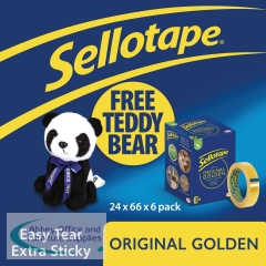 Sellotape Original Golden Tape 24mmx66m (Pack of 6) 1443306 Extra strong and extra sticky. Golden in colour, but clear when applied. Easy tear, no need for teeth. Large core. Size: 24mm x 66m. Pack of 6.