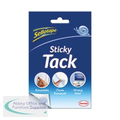 Sellotape Sticky Tack 45g Blue 2679478. Reusable, repositionable adhesive putty. Mount posters quickly and with ease. Suitable for hanging decorations and greeting cards. Removes lint from clothes and upholstery. 45g per pack.