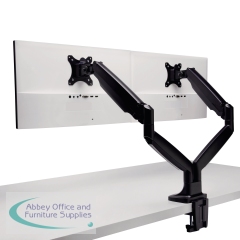 Kensington SmartFit One-Touch Dual Monitor Arm Height Adjustable Black K59601WW. Maximise desk space. Reduce eye/neck/shoulder strain. 170-505mm height adjustment. Screen Size: 13-34 inches. Weight Capacity (kgs): 9. Mounting Option: C-Clamp or grommet.