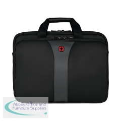 Wenger Legacy 17 Inch Laptop Case Triple Gusset 420x210x320mm Black/Grey 600655. Padded laptop compartment, suitcase opening. 3 main compartments. Essentials organizer. Pass-Thru trolley strap. Adjustable, padded shoulder strap. Detachable key fob.