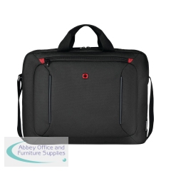 Wenger BQ 16Inch Laptop Case Clamshell Opening 420x80x330mm Black 611907. Padded laptop compartment. Essentials organizer. Removable, padded shoulder strap. Front zippered QuickAccess pocket. Slip pocket. Pass-Thru trolley strap. Material: 100% Polyester.