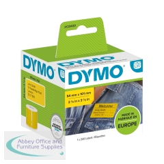 Labels for use with LabelWriter printers. Thermal print paper: no ink required. Self adhesive for quick and precise labelling. Compatible with LabelWriter 450 Series and 4XL label makers. One roll of 220 labels. Colour: Yellow.