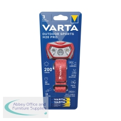 Varta Outdoor Sports H20 Pro Head Torch 3xAAA 52 Hours Run Time 17650101421. 3 light modes. Swiveling head. 2m drop test. Water resistant (IPX4). Low battery indicator. Including red LED night vision. Requires 3xAAA batteries (incl). 200 Lumen. 50m range.