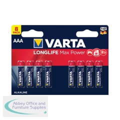 Varta Longlife Max Power AAA Battery (Pack of 8) 04703101418. AAA batteries for high tech devices. Suitable for use in digital cameras, blood pressure monitors, game controllers and more. Blister pack with \'single press out\' feature.