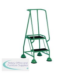 VFM 4-Tread Step. Green. Fully welded tubular steel construction. Ribbed rubber treads. Castors with non marking tyres. Non returnable.