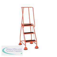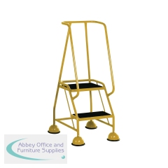 VFM 4-Tread Step. Yellow. Fully welded tubular steel construction. Ribbed rubber treads. Castors with non marking tyres. Non returnable.