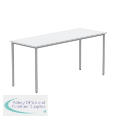 Astin Rectangular Multipurpose Table 1600x600x730mm Arctic White/Silver KF77741. 25mm top thickness. Provides stability, legroom, and versatile configurations. Frame Colour: Silver. Colour: Arctic White. Dimensions (WxDxH): 1600x600x730mm.