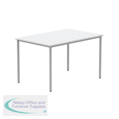 Astin Rectangular Multipurpose Table 1200x800x730mmArctic White/Silver KF77742. 25mm top thickness. Provides stability, legroom, and versatile configurations. Frame Colour: Silver. Colour: Arctic White. Dimensions (WxDxH): 1200x800x730mm.