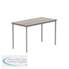 Astin Rectangular Multipurpose Table 1200x600x730mm Alaskan Grey Oak/Silver KF77744. 25mm top thickness. Provides stability, legroom, and versatile configurations. Frame Colour: Silver. Colour: Alaskan Grey Oak. Dimensions (WxDxH): 1200x600x730mm.