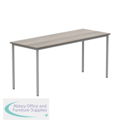 Astin Rectangular Multipurpose Table 1600x600x730mm Alaskan Grey Oak/Silver KF77745. 25mm top thickness. Provides stability, legroom, and versatile configurations. Frame Colour: Silver. Colour: Alaskan Grey Oak. Dimensions (WxDxH): 1600x600x730mm.