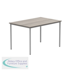 Astin Rectangular Multipurpose Table 1200x800x730mm Alaskan Grey Oak/Silver KF77746. 25mm top thickness. Provides stability, legroom, and versatile configurations. Frame Colour: Silver. Colour: Alaskan Grey Oak. Dimensions (WxDxH): 1200x800x730mm.