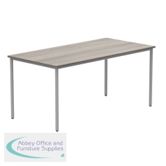 Astin Rectangular Multipurpose Table 1600x800x730mm Alaskan Grey Oak/Silver KF77747. 25mm top thickness. Provides stability, legroom, and versatile configurations. Frame Colour: Silver. Colour: Alaskan Grey Oak. Dimensions (WxDxH): 1600x800x730mm.