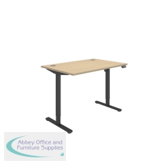 Astin Economy Single Motor Sit/Stand Desk 1400x800x705-1220mm Canadian Oak/Black KF800007. Heat and stain resistant desk top finish. Includes cable Ports. Robust steel frame. Height adjustable feet. Colour: Canadian Oak/Black.