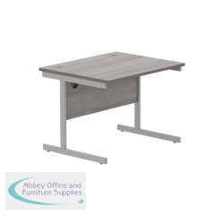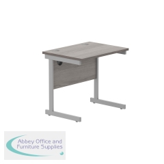 Astin Rectangular Single Upright Cantilever Desk 800x800x730mm Grey Oak/Silver KF800049. Durable, spacious rectangular office desk. Suitable for use in any setting. 25mm thick desktop. 80mm cable ports fitted as standard. Cantilever legs for stability.