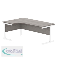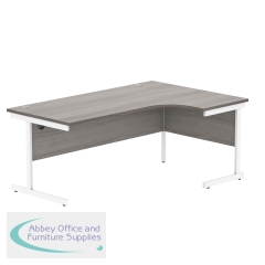 Astin Radial Left Hand Single Upright Desk 1800x1200x730mm Grey/White KF800053. Durable, spacious rectangular office desk. Suitable for use in any setting. 25mm thick desktop. 80mm cable ports fitted as standard. Cantilever legs for stability.