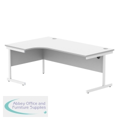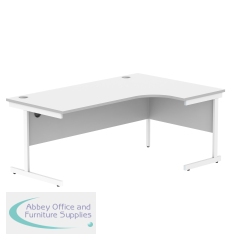 Astin Radial Left Hand Single Upright Desk 1800x1200x730mm White/White KF800055. Durable, spacious rectangular office desk. Suitable for use in any setting. 25mm thick desktop. 80mm cable ports fitted as standard. Cantilever legs for stability.