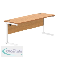Astin Rectangular Single Upright Cantilever Desk 1800x600x730mm Oak/White KF800063. Durable, spacious rectangular office desk. Suitable for use in any setting. 25mm thick desktop. 80mm cable ports fitted as standard. Cantilever legs for stability.
