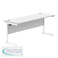 Astin Rectangular Single Upright Cantilever Desk 1800x600x730mm White/White KF800064. Durable, spacious rectangular office desk. Suitable for use in any setting. 25mm thick desktop. 80mm cable ports fitted as standard. Cantilever legs for stability.
