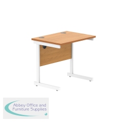 Astin Rectangular Single Upright Cantilever Desk 1800x800x730mm Oak/White KF800068. Durable, spacious rectangular office desk. Suitable for use in any setting. 25mm thick desktop. 80mm cable ports fitted as standard. Cantilever legs for stability.