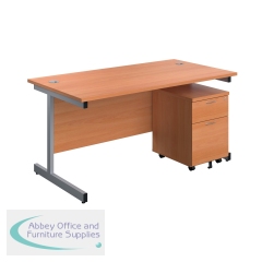 First Single Desk with 2 Drawer Pedestal 1600x800mm Beech/Silver KF803553. First workstation bundle, suitable for the home or office. Under-desk pedestal includes 2 drawers. Leg Colour: Silver. Colour: Beech. Non-returnable.